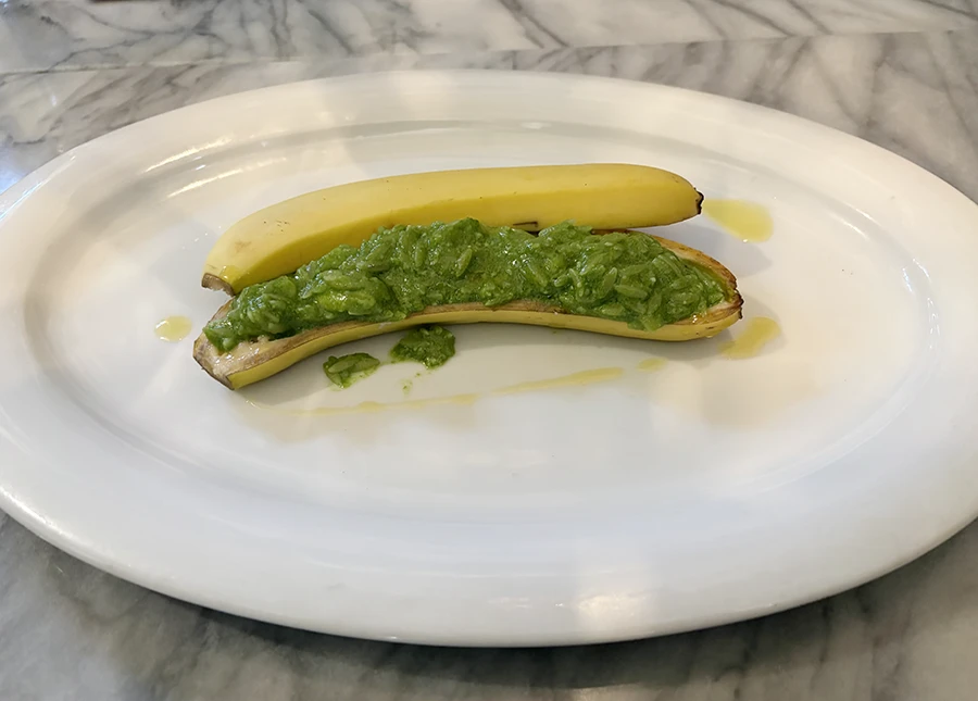 菜の花とバナナのパスタリゾット ジェノバ風 CaSa
