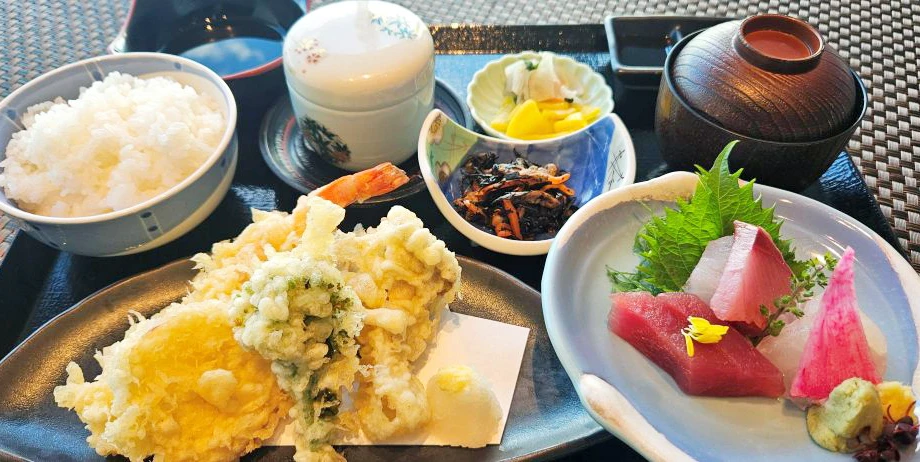 菜の花を使った天ぷら、新鮮なお刺身をお楽しみいただけるお膳です。
