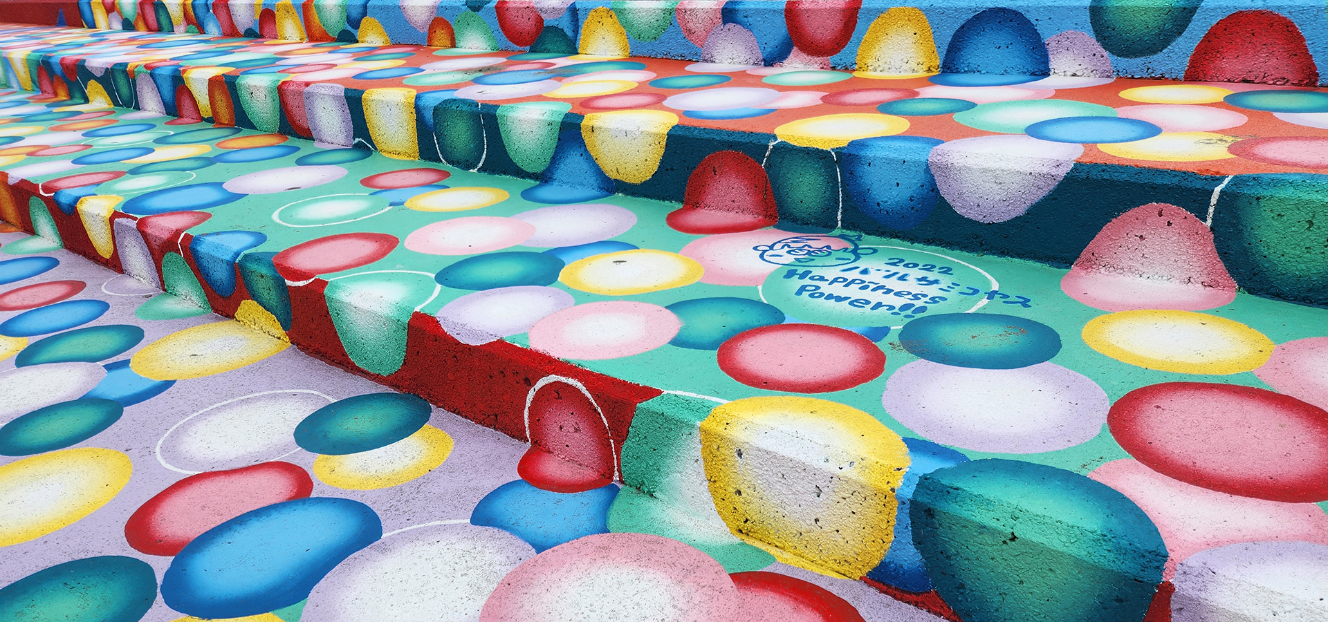 2019年鴨川ウォールアート第2弾として、青い毛むくじゃらのモンスターの裏側に描かれました。アーティストのMHAK氏と市民が共同で描いた作品。