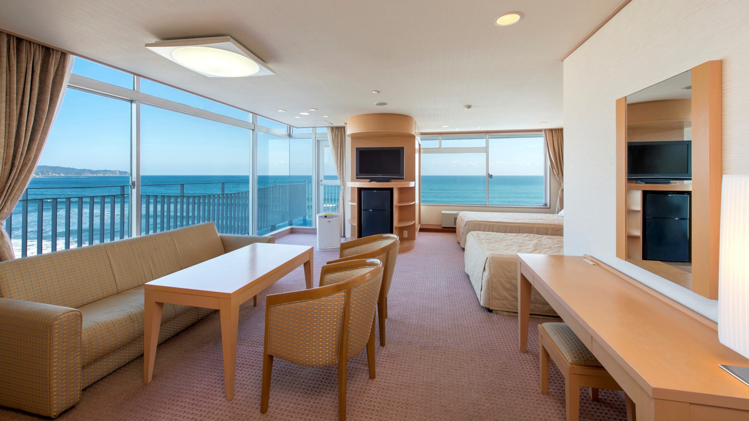 全室オーシャンビューのゆとりあるお部屋で太平洋を一望できます。鴨川シーワールドに隣接するオフィシャルホテルとして、宿泊者専用の水族館への入館パスポートをお渡しします。ホテルに宿泊する当日と翌日は、無料で鴨川シーワールドへのご入館が可能です。